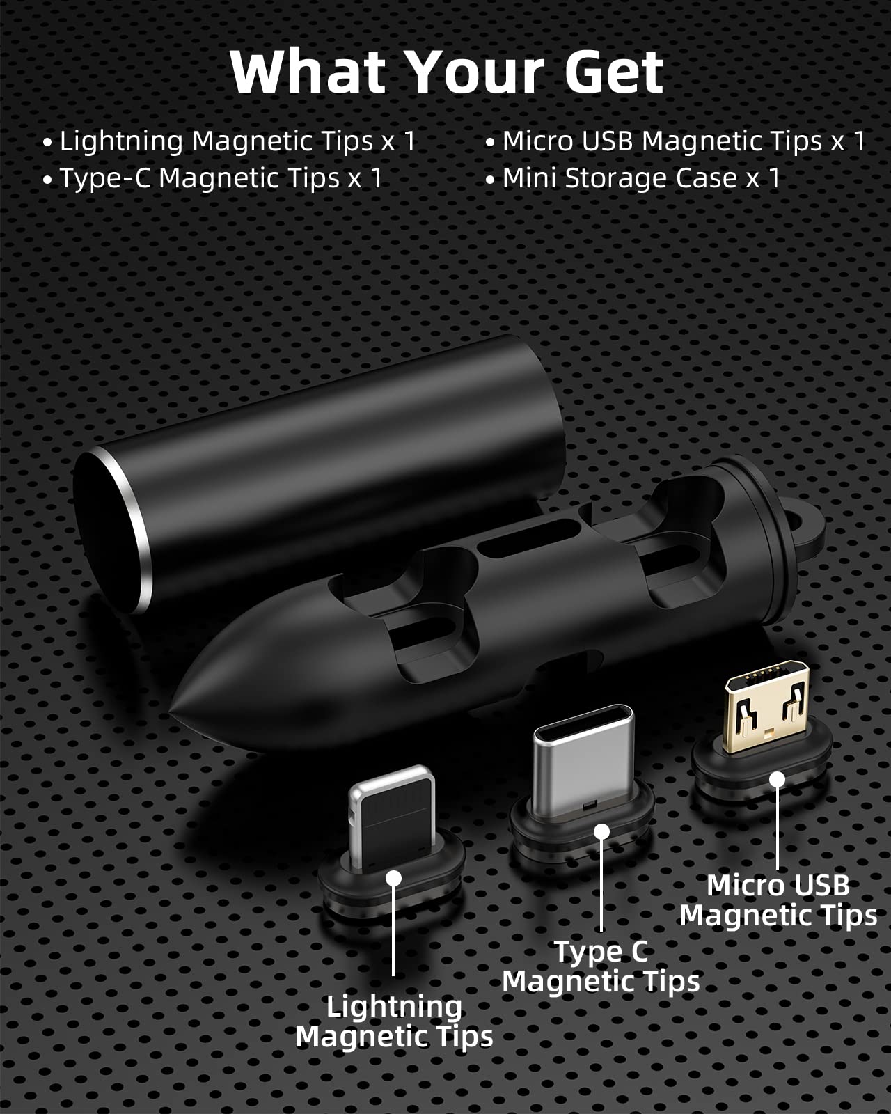 - 【What You Get 】- 3 * Magnetic USB-C Tips + 1* Anti-lost Storage Case + 30 days Money Back with no-hassle + 1 Year Warranty